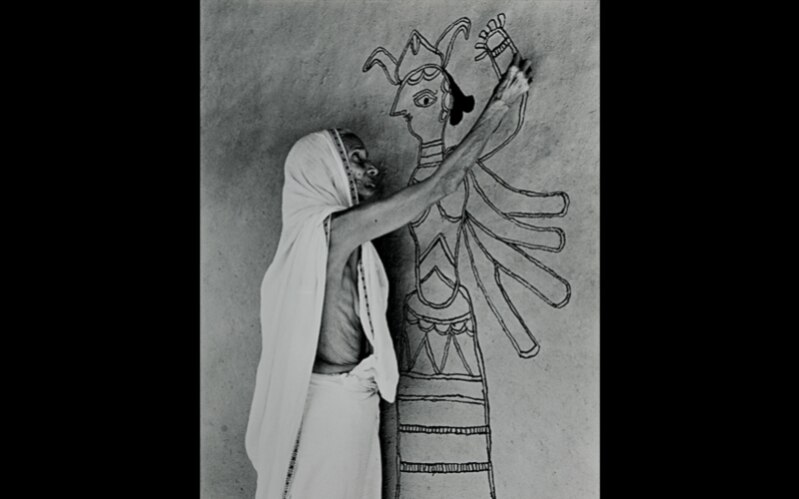 From portraits to photographic studies of folk traditions to finding ways to express a post-Independent India at the cusp of a deep-rooted culture and modern ideas, Bhatt’s work across the second half of the 20th century spans many spectrums. This particular image, part of the Rural Studies section of the online exhibition, titled Time and Time Again, curated by Nathaniel Gaskell (founder and director of the MAP Academy— the education arm of the Museum of Art & Photography, Bengaluru), is a perfect example of his brilliant eye for the artistic in the realistic. Not only does the picture portray the folk artist working on a mural of Durga-Mahishasurmardini, but the way the contours of her body are reflected in the lines of her creation elevates it to art.